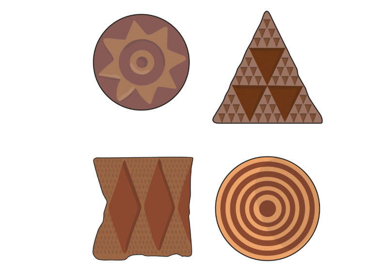 Estos motivos se humedecían en pigmentos naturales que actuaban como sellos con los que tatuar el cuerpo o marcar las propiedades (bolsos de cuero, graneros, paredes, etc.).